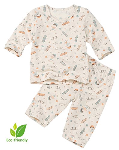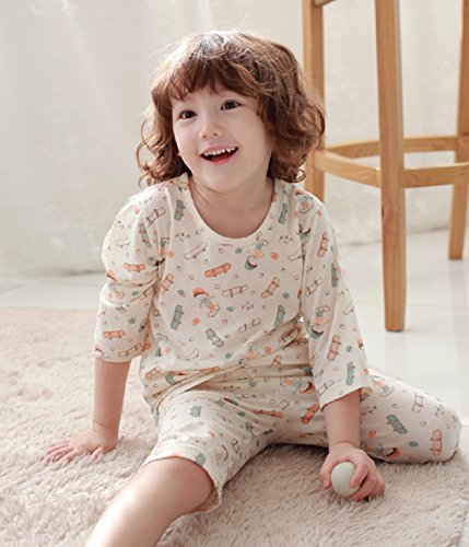 - ◎初春から初秋まで着ることのできる、デリケートなお肌のキッズから、元気いっぱいで、汗っかきな男の子にも、おしゃれな女の子にも、みんなにおすすめする、7分の袖とハーフパンツのナチュラルコットン100%のルームウェアです。