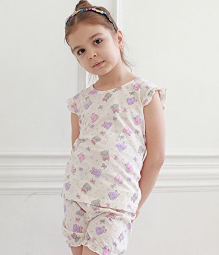 - ◎ガールズライクなパステルカラーがかわいいデザインで、コットン100%のフライス素材の、デリケートなお肌のお子さまにはもちろん、環境にもやさしいエコロジカルなルームウェアです。