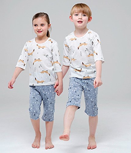 【あるこんたるこん】(TB-7) ルームウェア ブラウンフォックス ベビー キッズ ジュニア 女の子 男の子 7分袖 シャツ パジャマ (120)