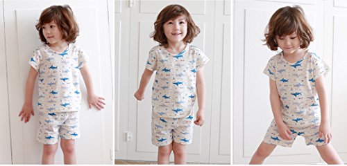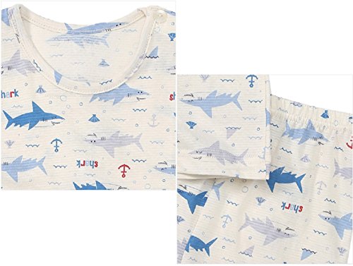 【あるこんたるこん】〈J&T〉ベビー ルームウェア シャークブルー キッズ 3分袖 ショートパンツ ジュニア 男の子 コットン パジャマ (120)