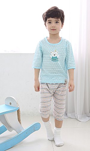 - ◎春から秋に、デリケートなお肌のキッズから、元気いっぱいで、汗っかきな男の子にも、おしゃれな女の子にも、みんなにおすすめする、7分の袖とハーフパンツのコットン100%のルームウェアです。