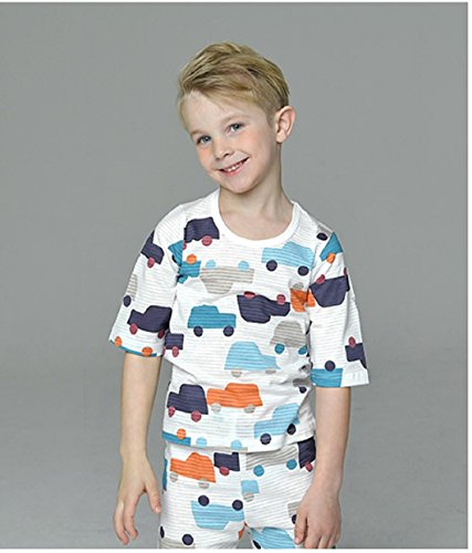 【あるこんたるこん】(7-TB) ベビー ルームウェア ブロックカ― 男の子 女の子 春夏 7分袖丈 キッズ ジュニア パジャマ 上下セット 70-160 (140)