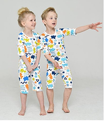 - ◎春から秋まで着ることのできる、デリケートなお肌のベビーからジュニアまでの、元気いっぱいで、汗っかきな男の子にも、おしゃれな女の子にも、みんなにおすすめする、7分の袖とハーフパンツのコットン100%のルームウェアです。