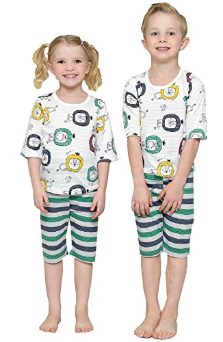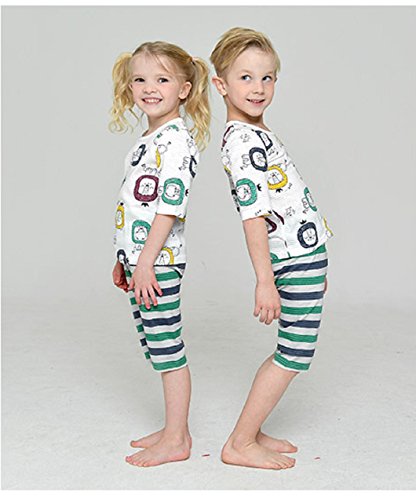 【あるこんたるこん】(7-TB) ベビー ルームウェア スクエアライオン 男の子 女の子 春夏 7分袖丈 キッズ ジュニア パジャマ 上下セット 70-160 (140)