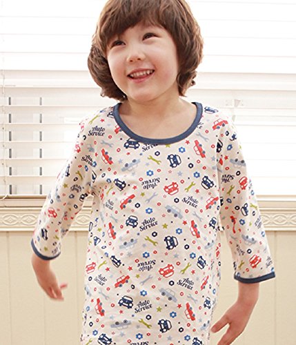 【あるこんたるこん】オーガニックコットン ベビー ルームウェア オートカー キッズ 7分袖 ハーフパンツ ジュニア 男の子 パジャマ (120)