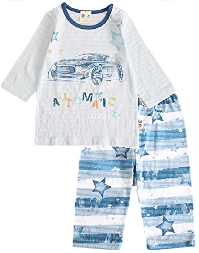 【あるこんたるこん】(Dg) ベビー ルームウェア オートマ 男の子 春夏 7分袖丈 キッズ ジュニア コットン100% パジャマ 上下セット 80-130 (130)