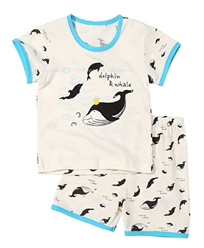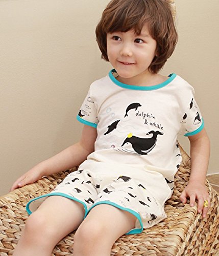 【あるこんたるこん】オーガニックコットン ベビー ルームウェア ホエールドル 男の子 春夏 3分袖 キッズ ジュニア パジャマ 上下セット 90-140 (110)