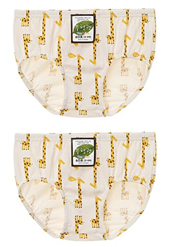 【あるこんたるこん】 ナチュラル コットン ベビー キッズ ジュニア ブリーフ キリン 男の子 トランクス ボクサー パンツ 2枚セット (130)