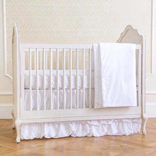 4-Piece Classic Bedding Set with Adjustable Crib Skirt, Swiss Dot The Summer Infant 4-Piece Classic Bedding Set in Swiss Dot adds elegant style to any nursery: gender neutral, girl or boy themed. This timeless white, all-in-one set includes a premium, reversible quilt for extra comfort and warmth during story time, 2 coordinating crib sheets, and an adjustable crib skirt. The unique, high quality crib skirt can be easily adjusted to the perfect height as you lower the crib mattress, keeping the nursery looking beautiful. Balloon skirt adjusts to the perfect length as you lower the crib.View larger The premium reversible quilt is a beautiful nursery accent.View larger Two coordinating crib sheets are fully elasticized for snug fit.View larger This beautiful set is precious in a little boy nursery.View larger The premium solid white bedding set is beautiful with any neutral nursery theme.View larger Classic Swiss Dot is a natural choice for a sweet little girl nursery. View larger The 4-Piece Classic Bedding Set in Swiss Dot complements your dream nursery! The all white set adds a touch of style and elegance to any room d?cor. Swiss Dot Bedding Set at a Glance: Adjustable crib skirt looks perfect an any crib mattress height Premium, reversible quilt provides ultimate comfort and warmth during story time and on the floor for tummy time use Crib sheets are fully elasticized for a snug fit All pieces are machine washable for easy care