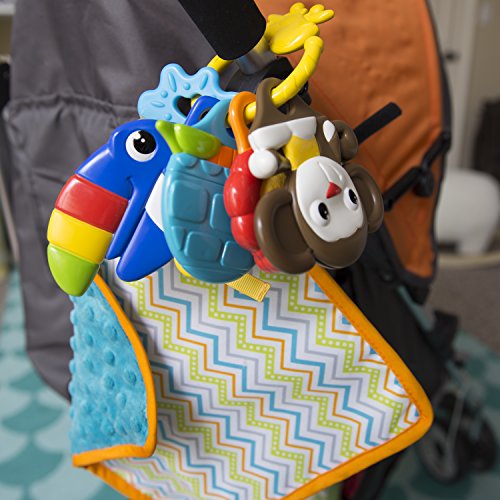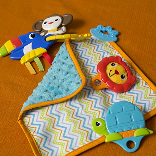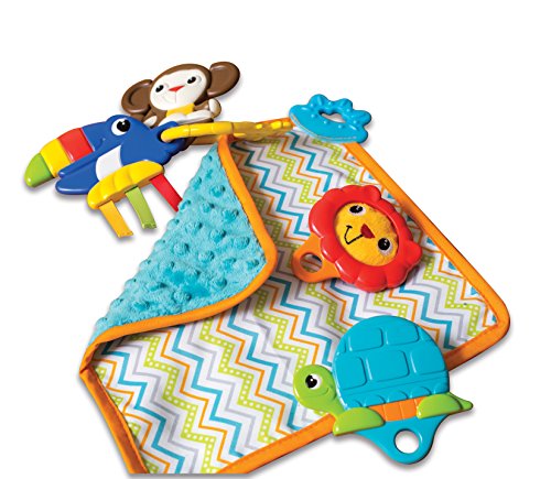 Perfect sized toys for baby's hands for easy play;Unique play pattern in each toy designed specifically to entertain your baby;Includes a teething blanket that can also be used to play a quick game of peek-a-boo too