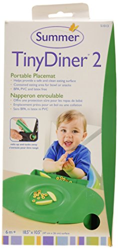 The Summer Infant Tiny Diner 2 is perfect for safe & clean eating at home or on-the-go.The BPA-free portable placemat has a patented "scoop" to catch food as it falls, an outer rim to help contain wet spills, and a centre circle which can hold food or be used to place most toddler bowls.When not in use, Tiny Diner 2 can be rolled and tucked into itself for convenient storage.