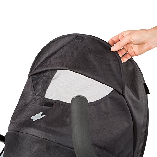 Unique reversible seat design allows baby to face you or face the world;Durable, stylish lightweight aluminum frame with large seat area and 5-point safety harness;One hand, 6-position recline (3 rear facing, 3 forward facing) and infant head support;Oversized, one-hand adjustable canopy with peek-a-boo window;Includes parent cup holder and side storage pocket