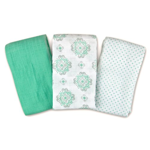 100% cotton muslin gets softer with every washing, Muslin is lightweight and naturally breathable for baby's comfort, Large blanket size (40"x40") is perfect for swaddling even the wiggliest baby, Multiple uses: swaddle, nursing cover, stroller cover, or burp cloth