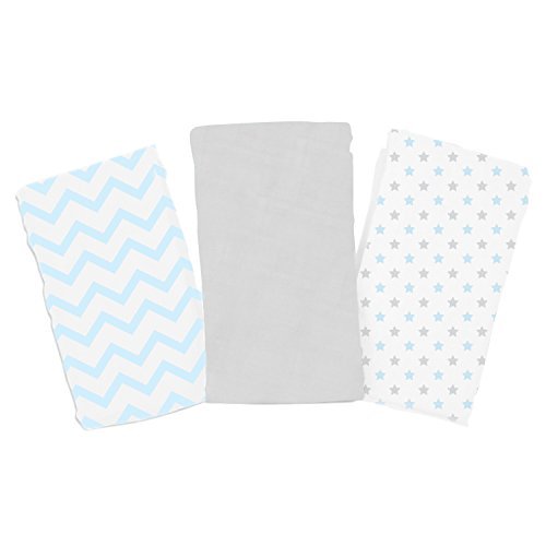 SwaddleMe Premium Muslin Blankets 3-PK, Teal Chevron & Stars (OS)