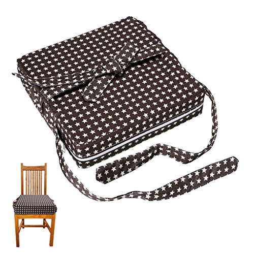 Sumnacon 食事 クッション こども 座布団 椅子用 クッション こども 高さ調節 チェアクッション 子供 動物の柄/星柄 ひも付き (星柄/茶色)