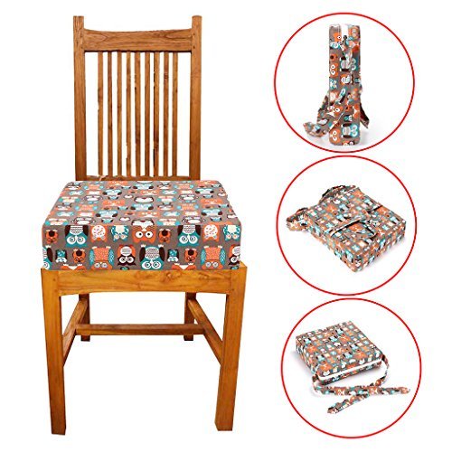 Sumnacon 食事 クッション こども 座布団 椅子用 クッション こども 高さ調節 チェアクッション 子供 動物の柄 ひも付き (フクロウ)