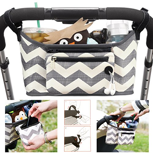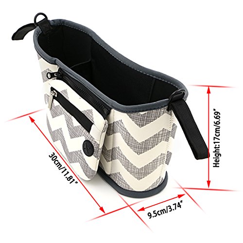 - 大容量:実用性が高くてほとんどのベビーカーにも適用する。左右にはペットボトルやほ乳瓶用置き場があり、真中の置き場には赤ちゃんの必要品やお財布、携 帯電話、カメラなどをきちんと収納できます。