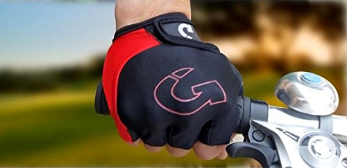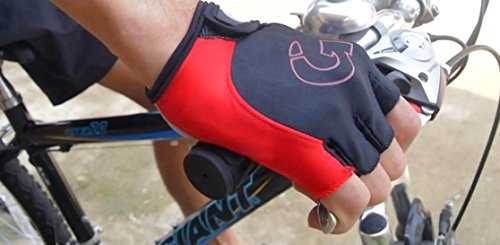 (サンライン)Sun Line 自転車用 サイクリンググローブ 指きり ハーフ 手袋 滑り止め付き 耐磨耗性 (レッド, XL)