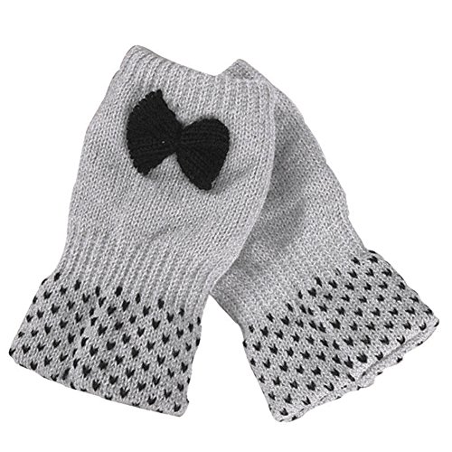 (サンライン)Sun Line 手袋 ニットミトン レディース 超可愛い 蝶結び 毛糸 グローブ 冬 保温( (グレー)