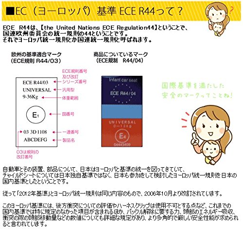 (国連の欧州経済委員会により設けられたヨーロッパ統一の制度で、チャイルドシートが安全基準に適合しているかどうか確認するためのものです)