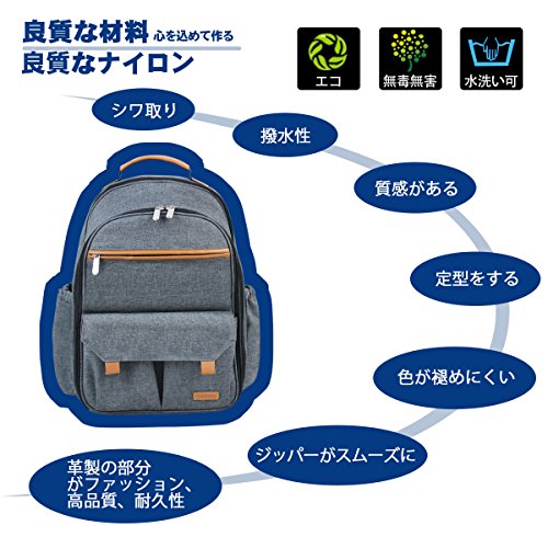 - 【おしゃれ】日本流行ポイントを加えるデザインは、正面両ポケットは学生スタイルを持って一層簡潔として美しい、ママリュックに青春の息をもたらし、カラーは高分子混色で何かに似合いグレーで、革製の部分は素材から作成まで高品質の顕著に現れて愈々ファッション感を与えます。