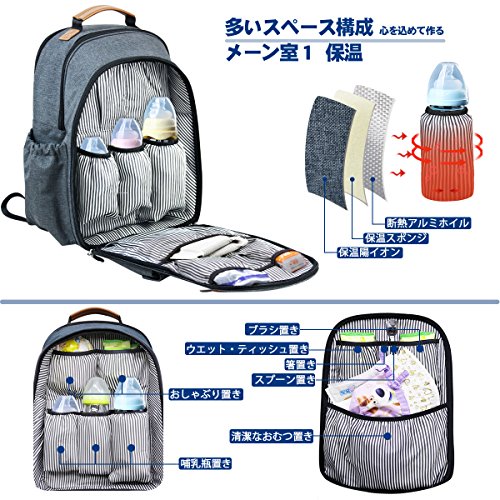 - 【便利設計】●メインルームのサイドにはダブルファスナーとマジックテープで270°開閉でき、チャックの部分には引っ張りやすい、取り入れも便利です。●ベビーカーにかけるバックル付くので、簡単便利。●魔法瓶ルームにはダブルファスナーで270°速く開閉でき、噛んでしまいません。