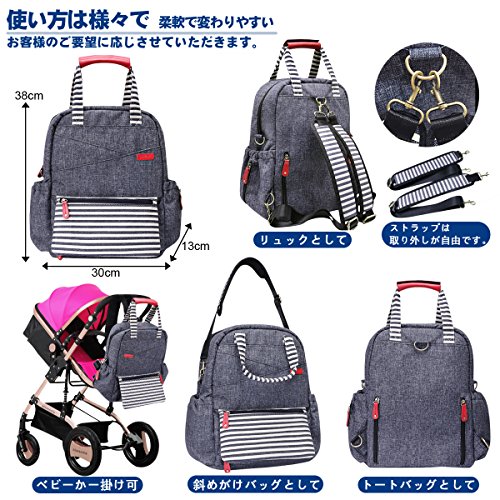 - 【多機能】3way仕様なので、トートタイプ、ショルダータイプ、リュックタイプとして使用できます。更にベビーカー吊り下げまでできちゃう最強マザーズバッグ。