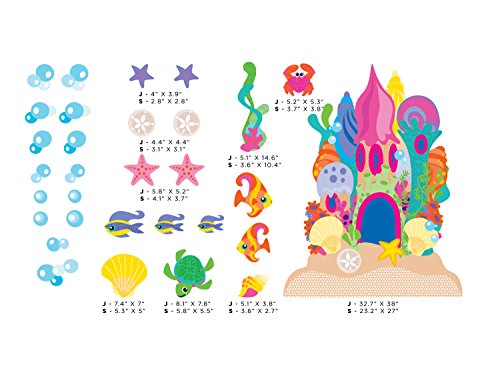 Sand Castleファブリック壁デカール、under the seaテーマwith Castle、魚、泡、and More、再利用可能な、再配置可能、2つサイズあり Jumbo 153L