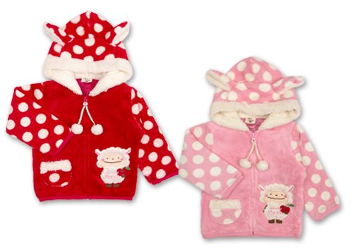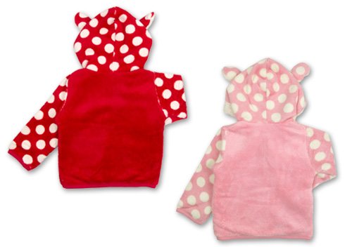 (サニーシープ)Sunny Sheep 【Sunny Sheep】 サニーシープ ひつじちゃんアップリケ ソフトフリース 水玉柄 お耳付フード ポッケ付 パーカー 80cm/90cm/95cm 95 レッド