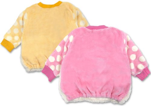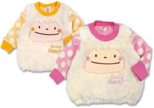 商品説明: サニーシープのBIGなひつじちゃんフェイスがCUTEなトレーナーです。 軽くて肌ざわりがとてもよく暖かなソフトフリース使用 左肩のスナップで着脱ラクラク お顔部分はボアフリース使用でさらにかわいく お耳もついています。 お袖部分は水玉柄なのも注目です お色はピンクとクリームの2色展開です。 サイズ: 80cm/90cm/95cm/100cm カラー: ピンク/クリーム 素材: 本体 ポリエステル100% リブ部分 綿95% ポリウレタン5% 原産国: 中国