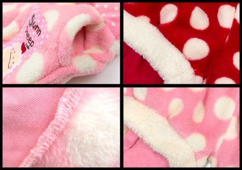 超人気サニーシープの水玉柄ソフトフリースがCUTEな重ね着風パンツです 軽くて肌ざわりがとてもよく暖かなソフトフリースと保湿性・伸縮性に優れたスムス素材使用☆ もこもこパンツと裾クシュスパッツを重ね着したようなデザインがとっても可愛い☆ 左右サイドポケット付き 前身ごろ左側にはサニーシープの布チケットも(^○^) お色はレッドとピンクの2色展開です サイズ: 80/90/95 カラー: レッド/ピンク 素材: 本体・ポリエステル100% スパッツ部分・綿100% リブ部分・綿95% ポリウレタン5% 原産国: 中国 配送・送料: 商品1点ですと、ヤマト運輸の紙袋梱包で、送料は、別記表のようになります。