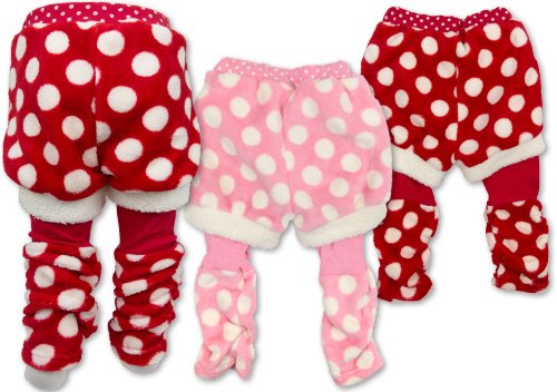 (サニーシープ)Sunny Sheep 【SunnySheep】 サニーシープ ソフトフリース×スムス 水玉柄重ね着風 裾くしゅパンツ 80cm/90cm/95cm 95 ピンク