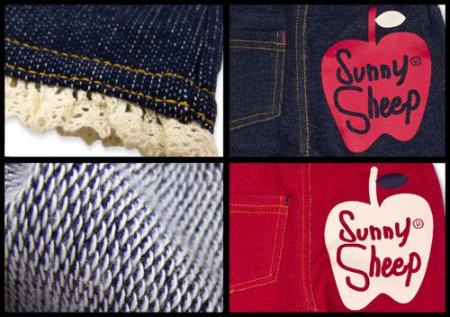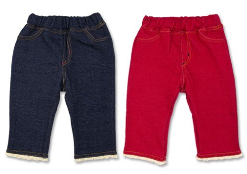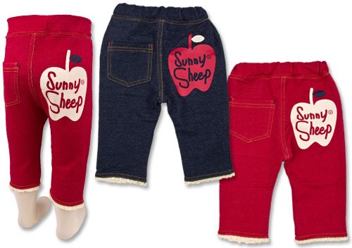 (サニーシープ)Sunny Sheep 2015 ロゴプリント おしりプリント 裾レース付 ポッケ付 ニットデニム パンツ 90cm レッド