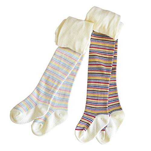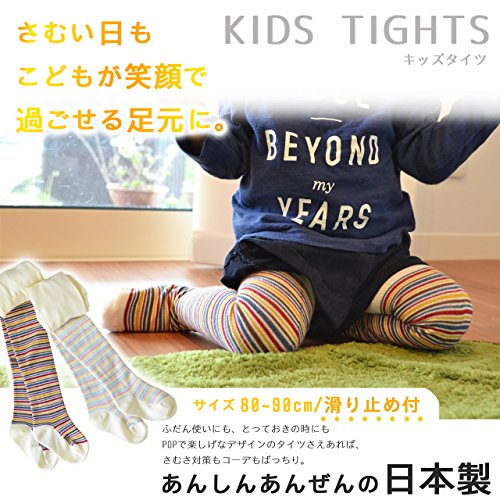 - ベビータイツ マルチボーダー柄 すべり止め付き パステル ビビットカラー80-90cm 日本製 16A-071