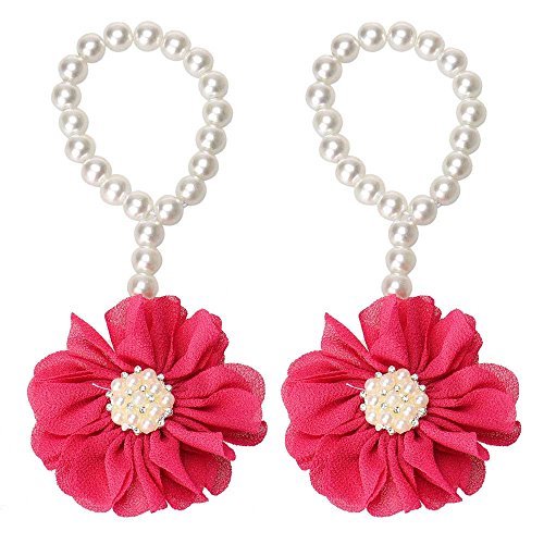 - Sunward 1Pair Baby Girls' Pearl Chiffon Barefoot Foot Flower Beach Sandals (Hot pink)