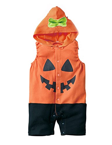 (スーパーモダン)Super Modernハロウィーン パンプキン ロンパース カボチャ 子供用 帽子付き キッズ 可愛い コスチューム ベビー服仮装 衣装子供 男女共用80~95cm コットン生地