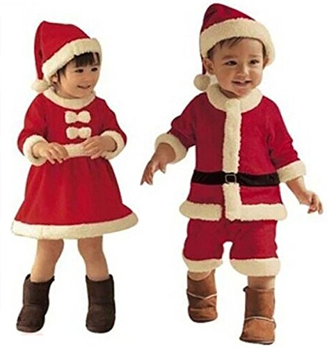 (スーパーモダン)Super Modernクリスマス ベイビー服 2点セット 普段着 サンタ帽子 コスチューム クリスマス子供服 キッズ 可愛い 衣装子供 80~100cm(0~2歳) 子供服 プレゼント子供 女の子 レッド