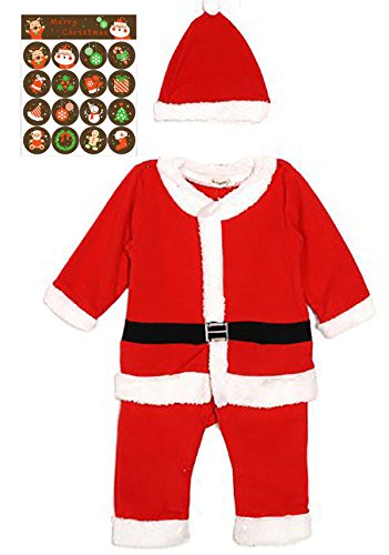 (スーパーモダン)Super Modernクリスマス用品 コスチューム クリスマス子供服 男の子衣装 女の子衣装 クリスマス ベイビー服 ロンパース&サンタ帽子 コスチューム 2点セット 普段着 クリスマス子供服 ソフト 可愛い キッズ 衣装子供 80~100cm子供服 プレゼント子供 男の子 レッド