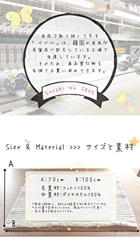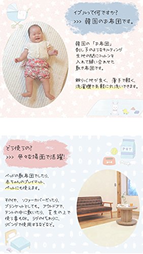 韓国の「お布団」刺し子のようなキルティング生地の間にコットンを入れて縫い合わせた敷き布団です。触り心地が良く、薄手で軽く、洗濯機で気軽に丸洗いできます。ベッドの敷布団でしたり、赤ちゃんのプレイマット、ペットにも使えます。Susabiのイブルは韓国の有名な百貨店に卸しをしている工場で生産しています。 ピグメント製法という特殊な染め方をしています。高温で煮る事でカラーを入れ、生地を殺菌するだけではなく、柔らかさと肌ざわりの良さを作り出しています。