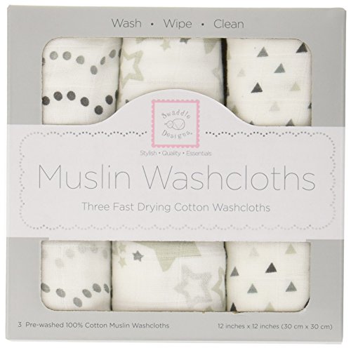 【日本正規品】 スワドルデザインズ (SwaddleDesigns) ウォッシュクロスモスリン スターシャインシマースターリングシルバー 3枚セット SDM-719ST