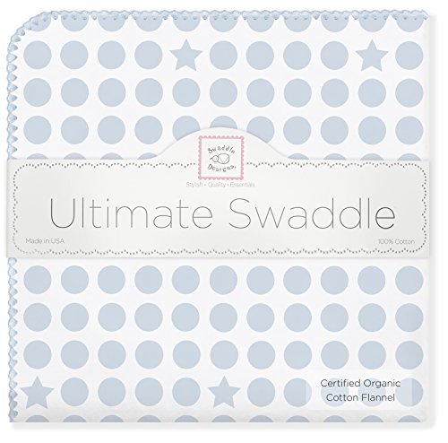 【並行輸入品】Swaddle Designs オーガニックコットン究極のおくるみブランケット 水玉&スター パステルブルー SD-068PB