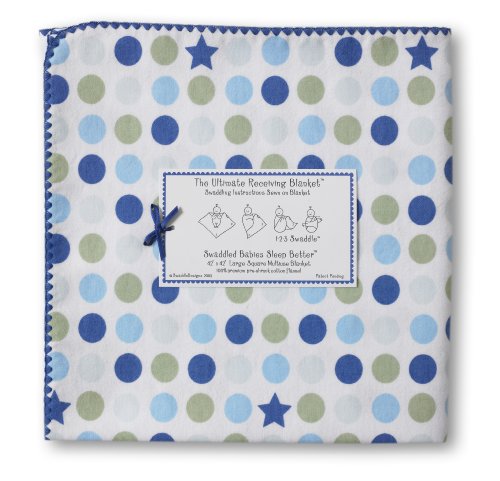 【並行輸入品】スワドルデザインズ 究極のおくるみブランケット ブラウンドット パステルブルー SD-014PB