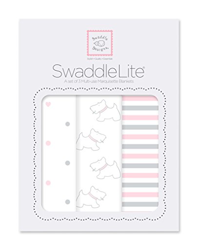 スワドルデザインズ おくるみ ライト ドッティースター&リトルドギー&シンプルストライプ パステル ピンク 3枚セット SD-635PP 【日本正規品】