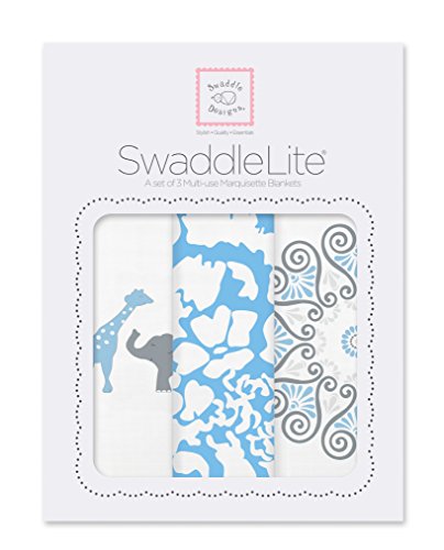 スワドルデザインズ おくるみ ライト サファリファン&ラッシュ&メダリオン ブルー 3枚セット SD-476B 【日本正規品】
