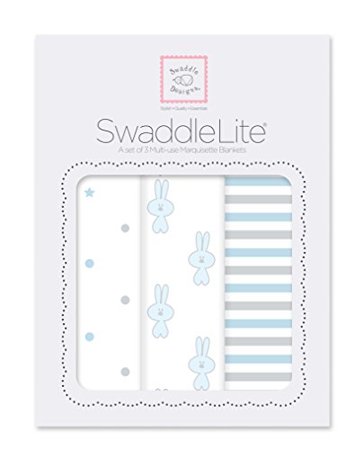 スワドルデザインズ おくるみ ライト ドッティースター&リトルバニー&シンプルストライプ パステル ブルー 3枚セット SD-634PB 【日本正規品】