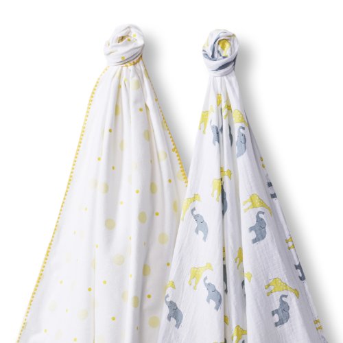 スワドルデザインズ おくるみ デュオ ビッグドットリトルドット・サファリファン イエロー 2枚セット SD-494Y 【日本正規品】