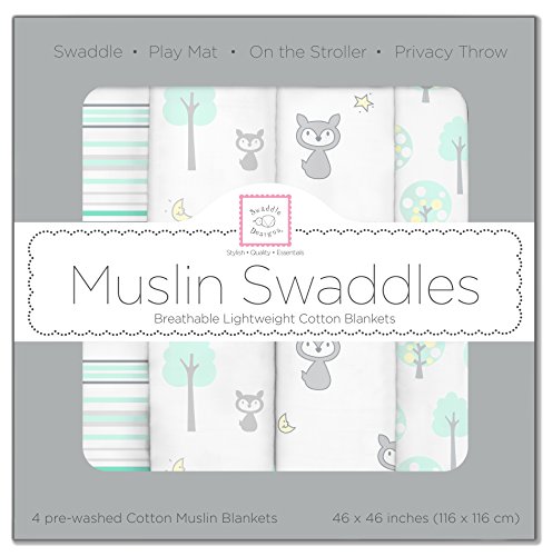 スワドルデザインズ おくるみ モスリン グリーンウッドランド シークリスタル 4枚セット SDM-122SC 【日本正規品】