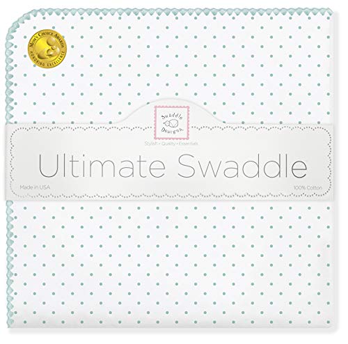 【並行輸入品】スワドルデザインズ 究極のおくるみブランケット ブラウンドット パステルブルー SD-014PB