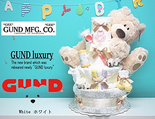 出産祝いおむつケーキ豪華DXおむつケーキ!GUNDホワイトテディ♪スワドルデザインズおくるみ (Mサイズ[3-12カ月], ホワイト)