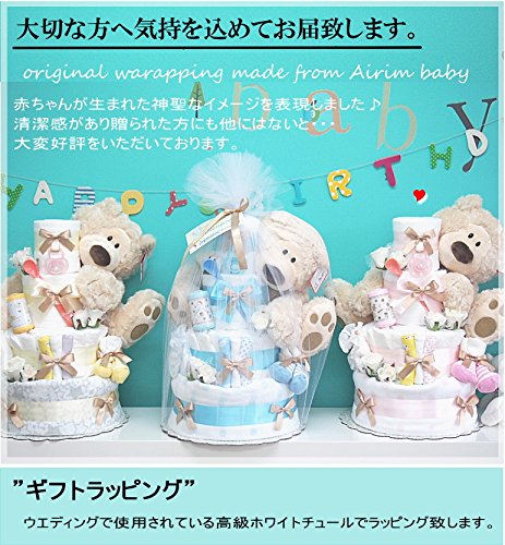 出産祝いおむつケーキ豪華DXおむつケーキ!GUNDホワイトテディ♪スワドルデザインズおくるみ (Sサイズ[2-5カ月], ブルー)